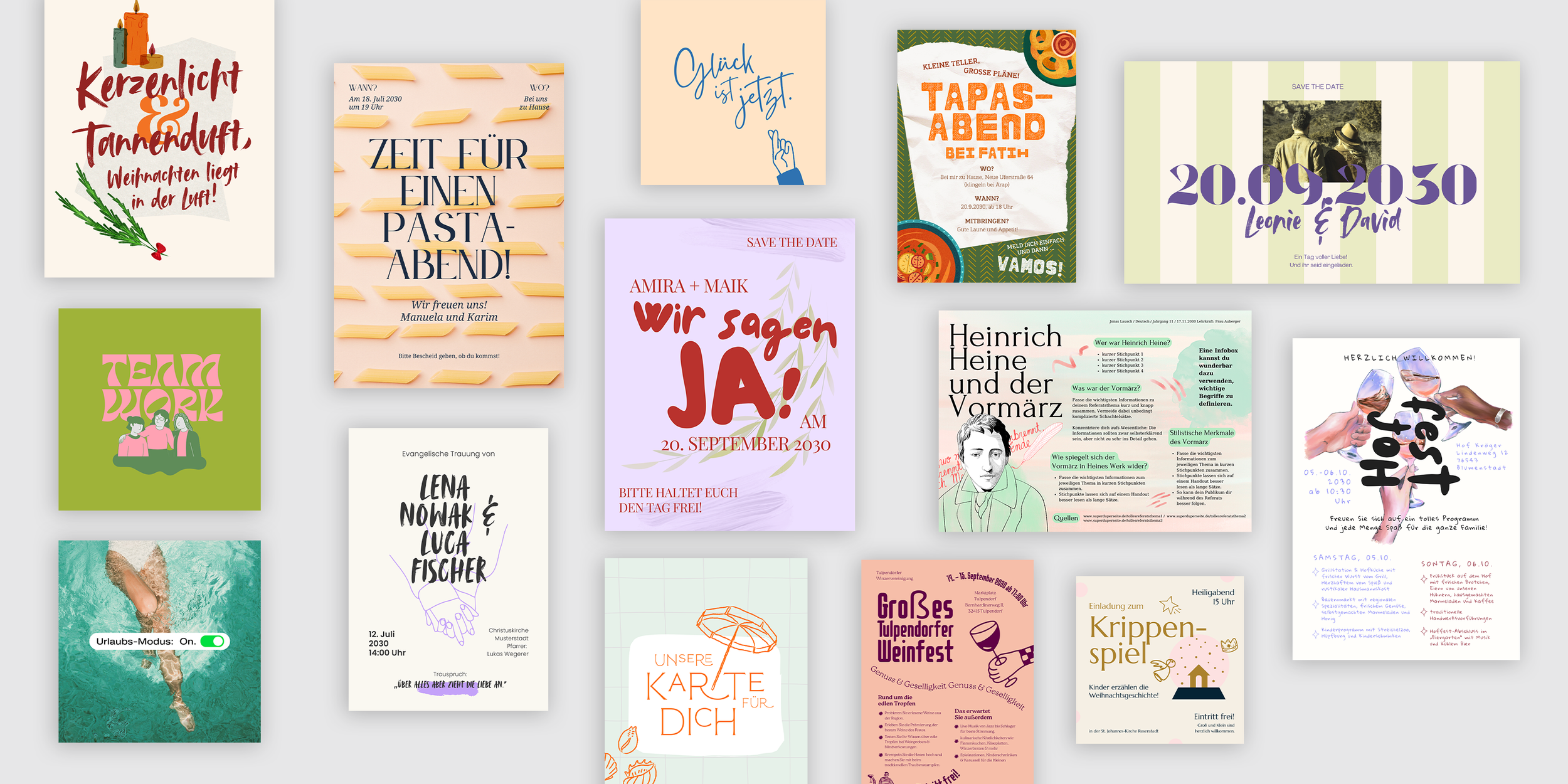 Konzeption und Design von Vorlagen für die globale Designplattform Canva, maßgeschneidert für die User im deutschsprachigem Raum.